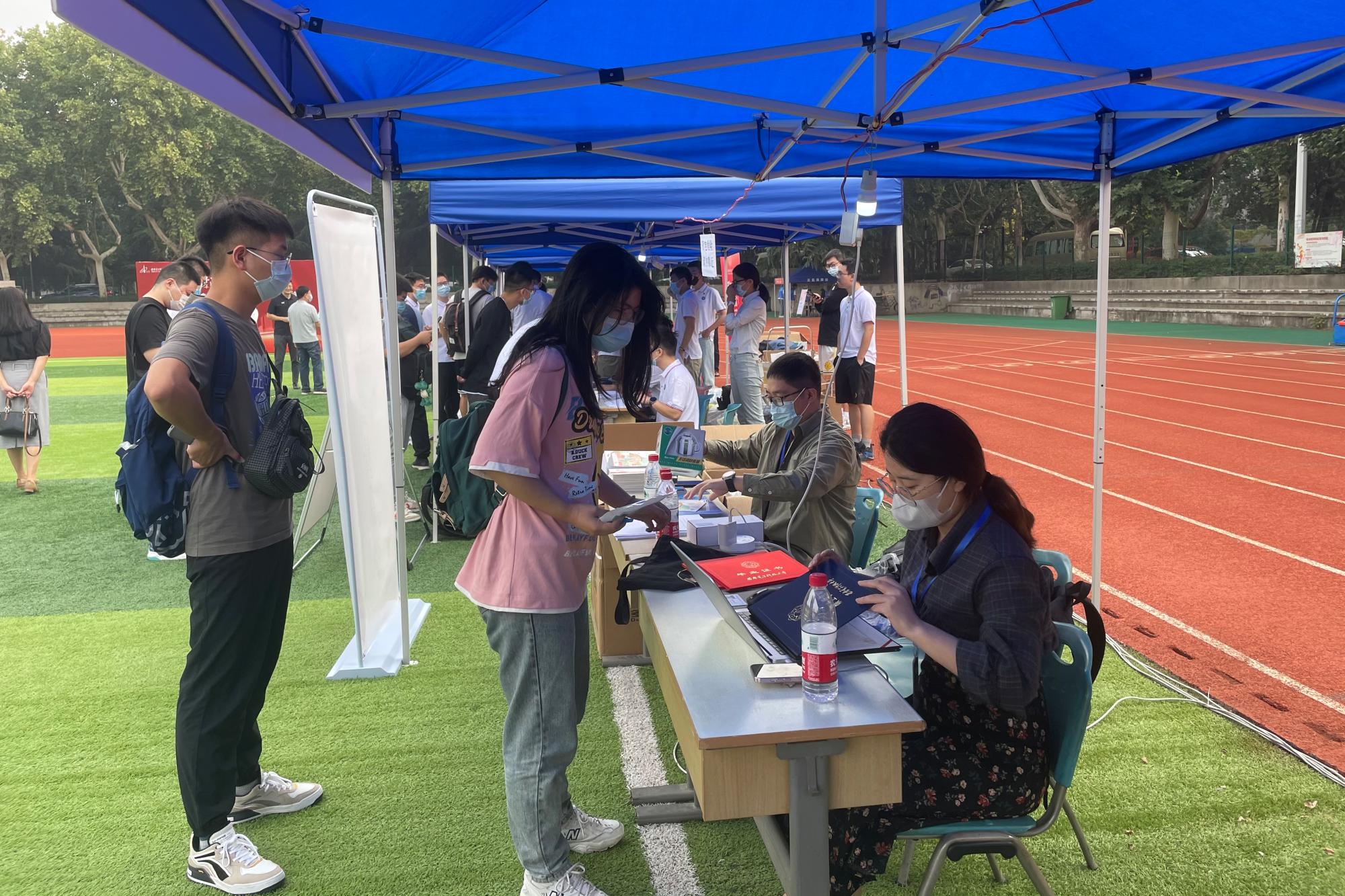 在北校区操场、西南门设置迎新点组织开展2022级研究生、第二学位本科新生接待工作。