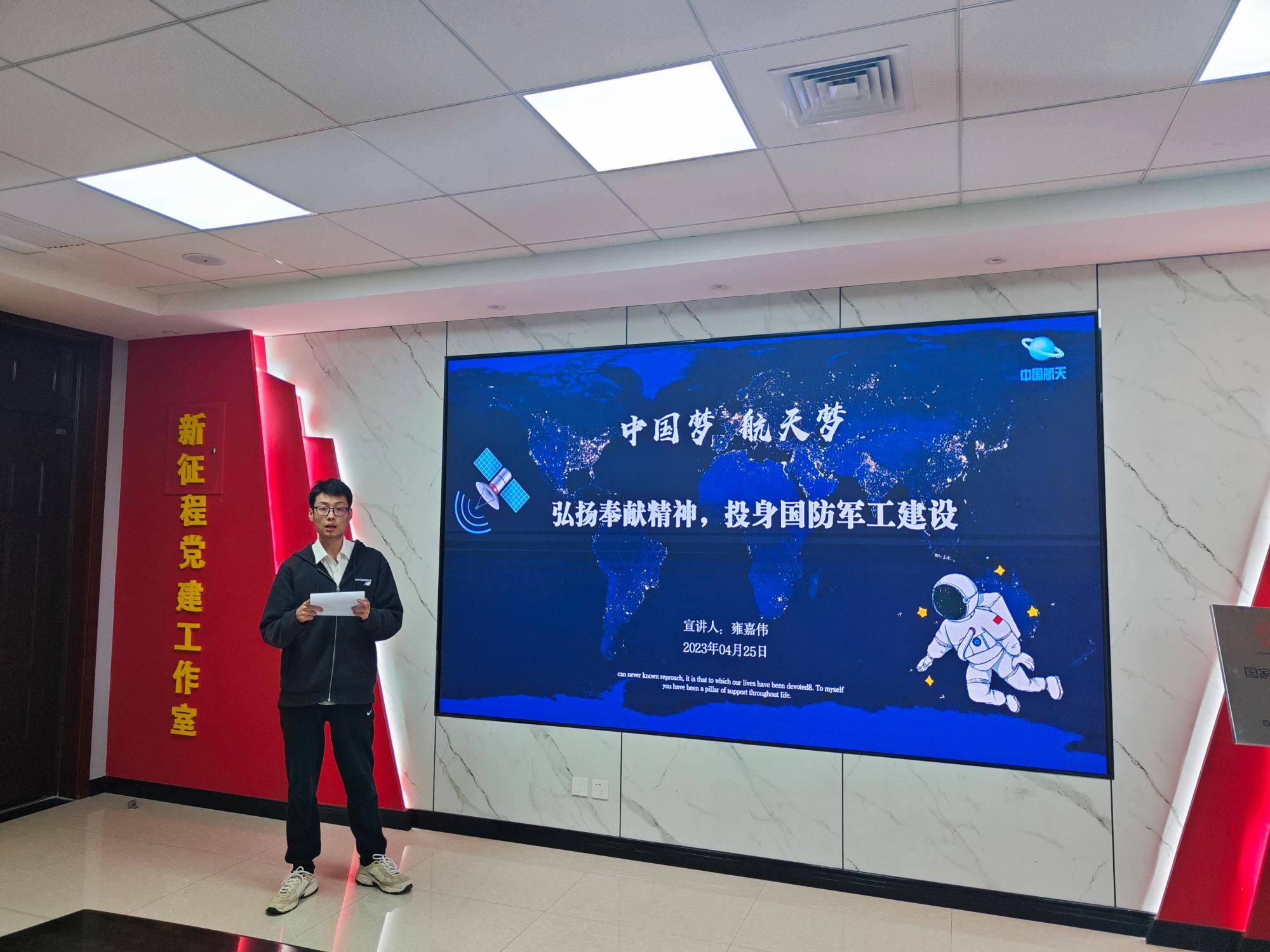 研究生雍嘉伟以“弘扬奉献精神,投身国防军工建设”为主题进行宣讲。他通过习近平总书记在纪念中国人民志愿军抗美援朝出国作战70周年大会上的讲话,阐述了国防军工建设在国家发展中的重要地位和意义,并围绕毛泽东主席等老一辈领导人以及钱学森、邓稼先等科研工作者对国防军工事业发展做出的重要贡献、中国航天事业的发展现状、新时代下青年人应该如何行动等三个方面进行宣讲,号召新时代青年应怀揣理想抱负,为祖国的国防事业贡献自己的力量,走出有价值、有意义、更加充实的人生之路。