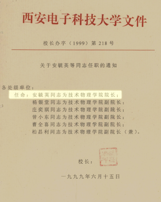 从四系、二系调了一部分学生,成立了五系“无线电物理与电子器件系”。安毓英也被从二系调到了五系,就读“量子无线电专业”。后来,他就毕业在五系,工作在五系,退休也在五系。