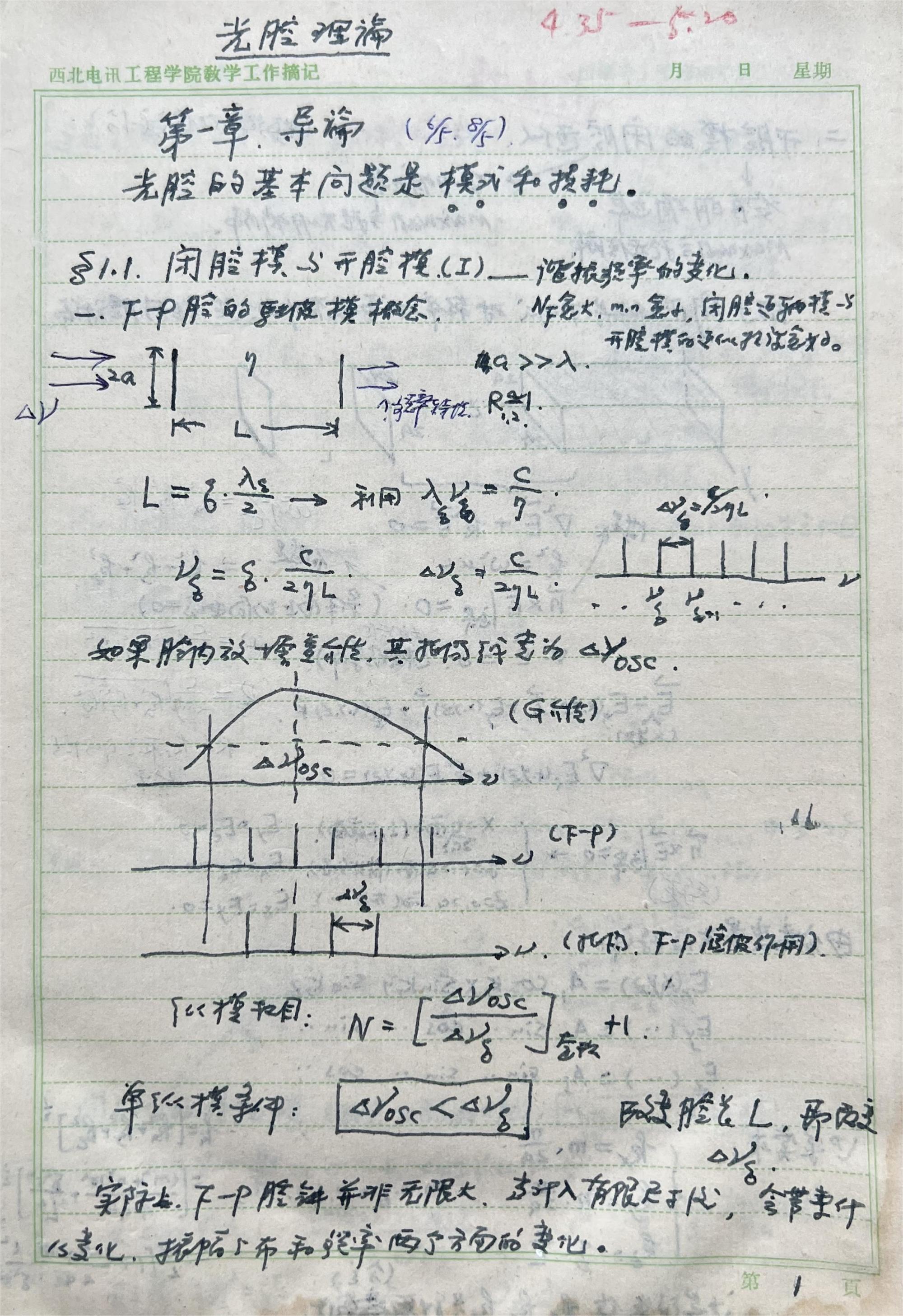 《激光原理与技术》手稿(金沙娱乐城档案馆馆藏)