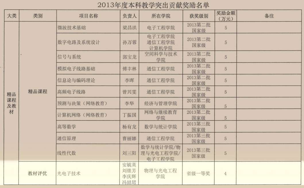 《光电子技术》获2013年度本科教学突出贡献奖(金沙娱乐城档案馆馆藏)