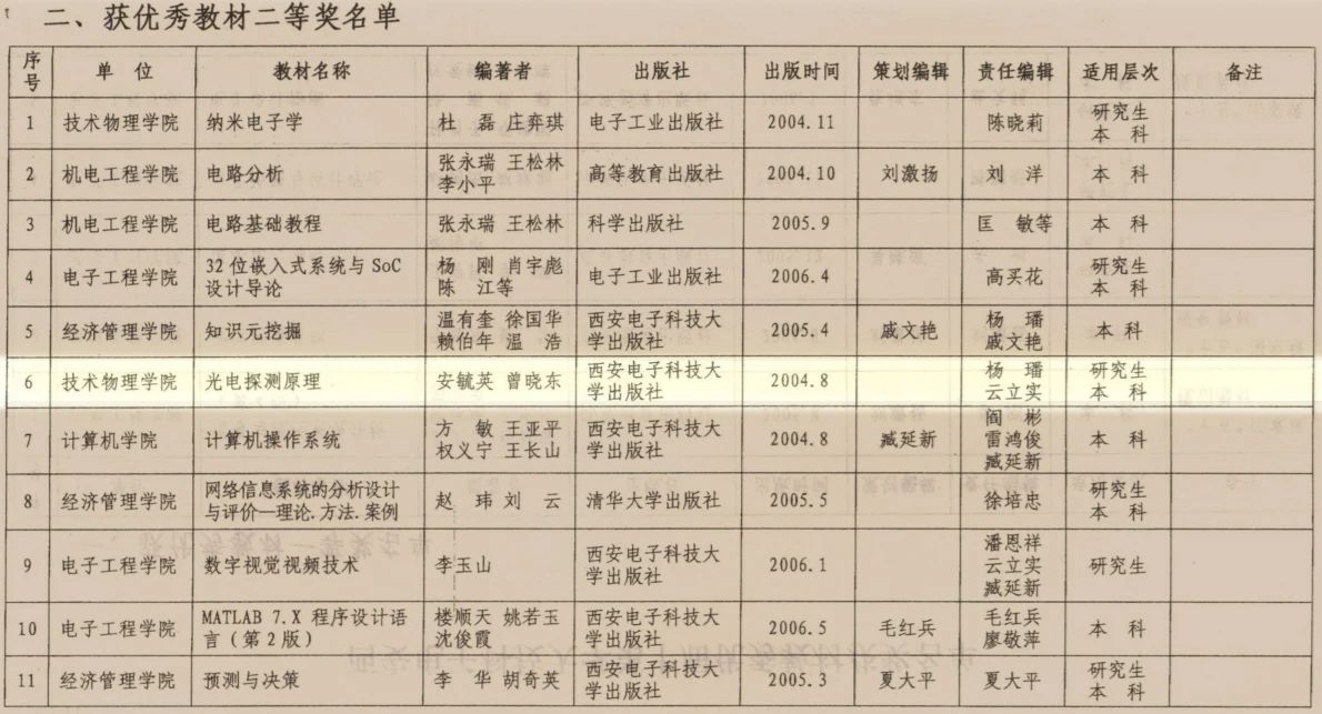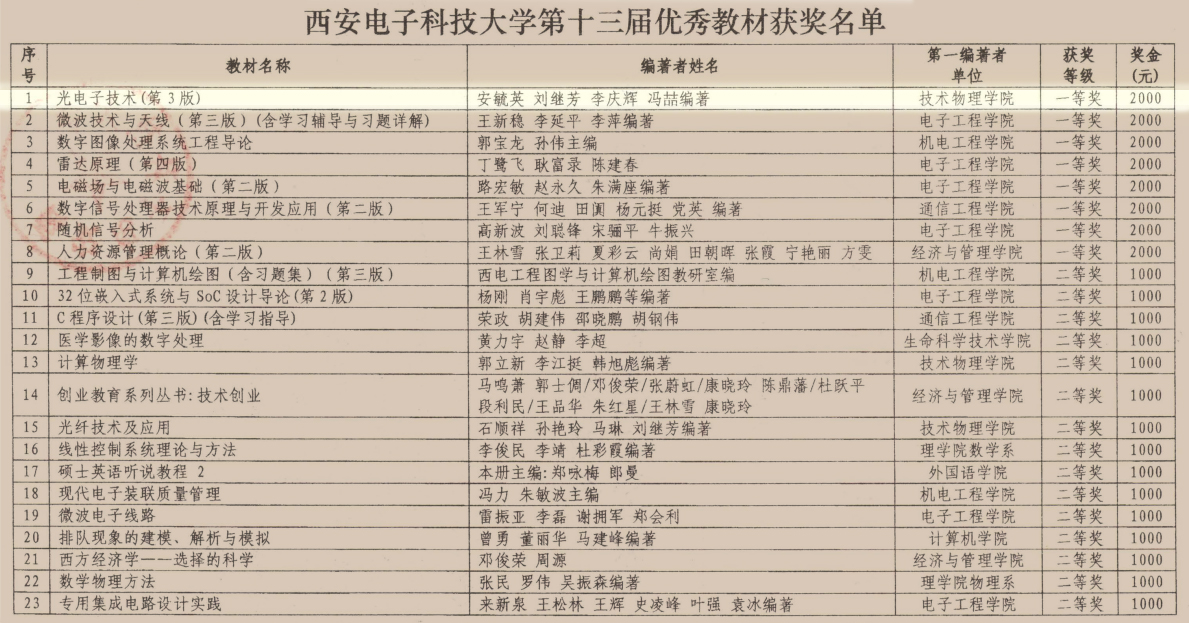 一举申报成功,获批“光学工程国家一级学科博士授权点”!而安教授在光电子技术方面撰写的一系列教材,也为学科点的申报成功发挥了重要作用。
