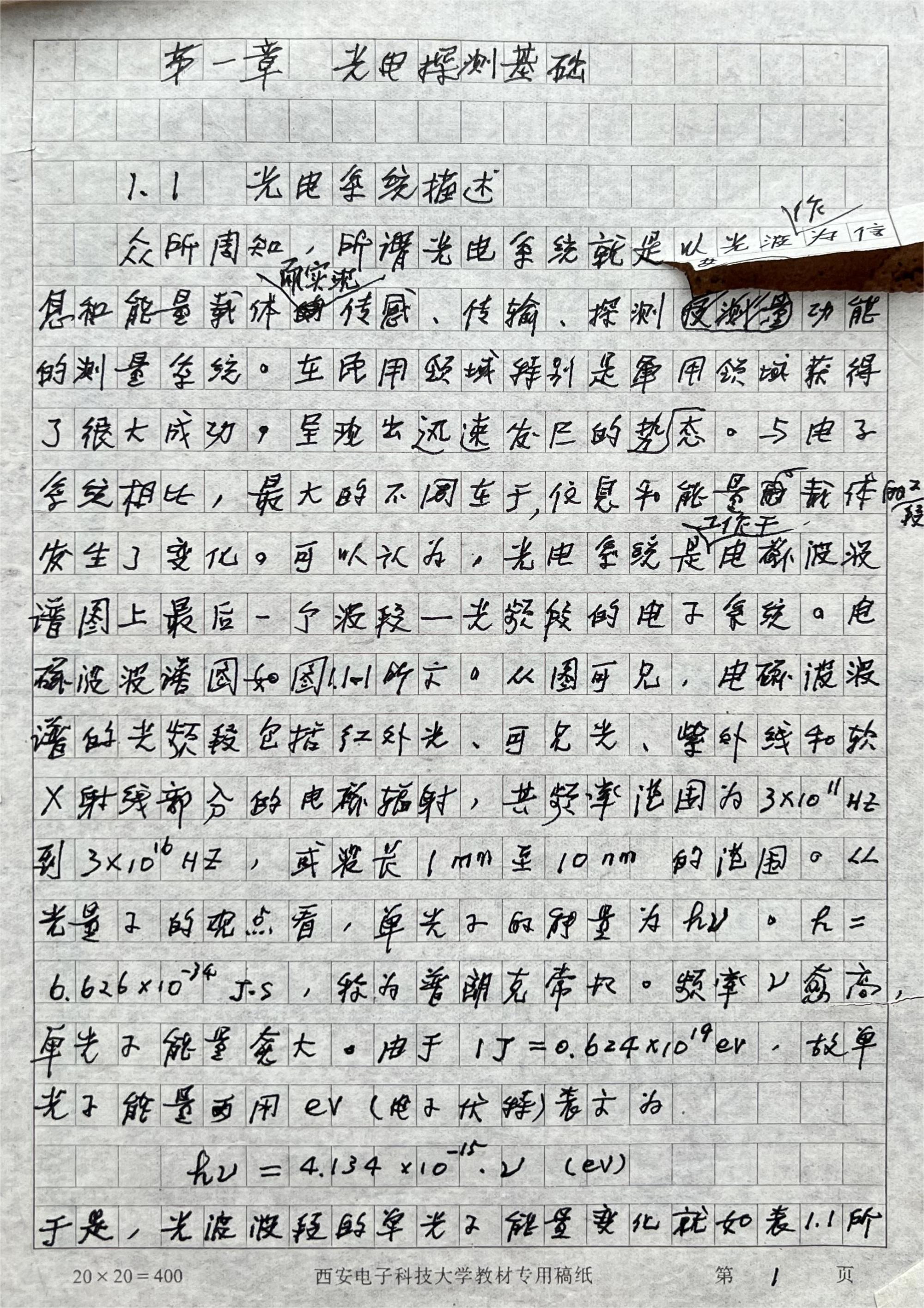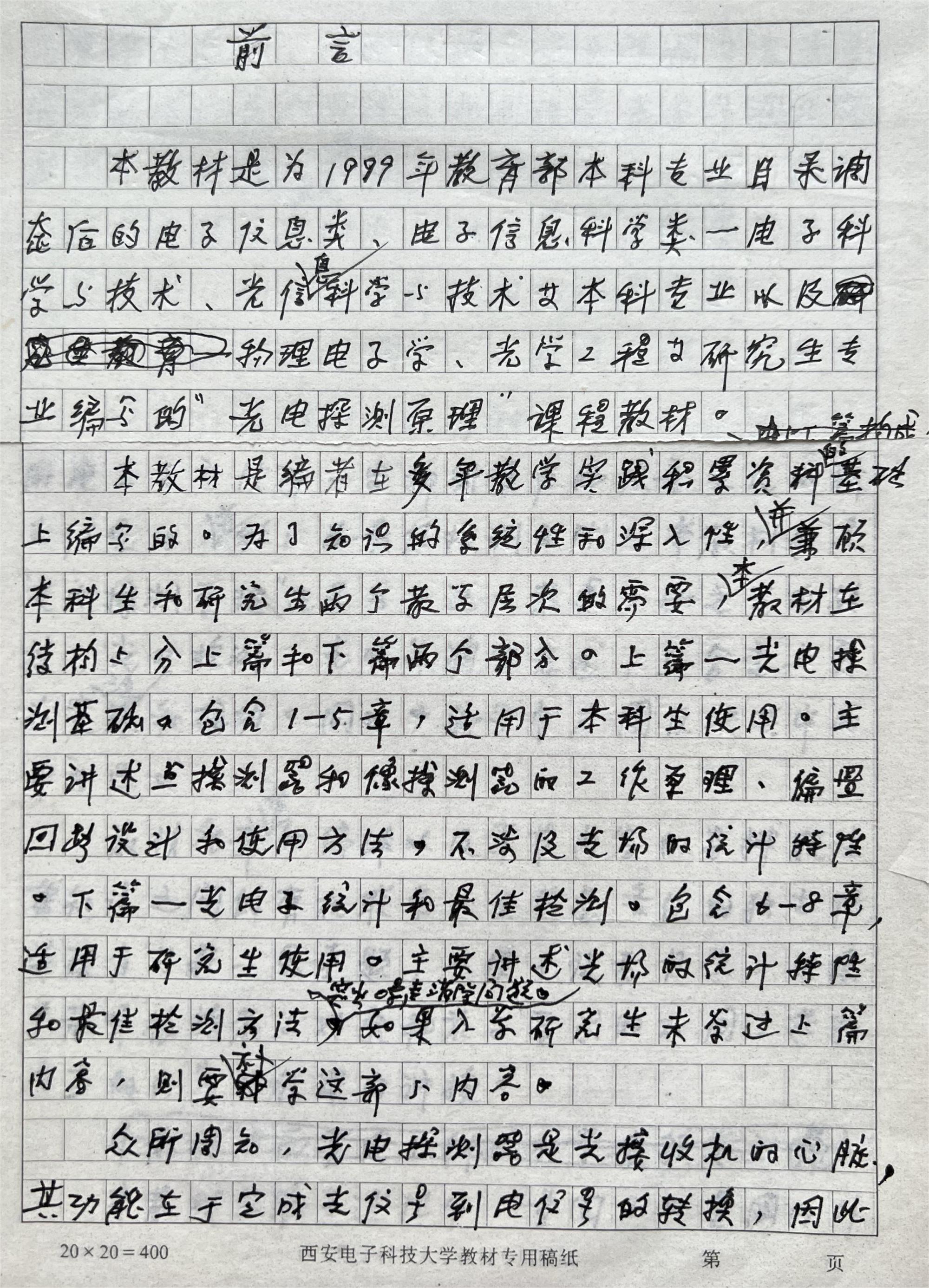 《光电探测原理》手稿(金沙娱乐城档案馆馆藏)