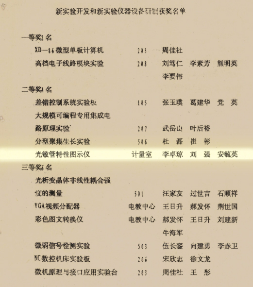 1996年安毓英教授等在新实验开发和新实验仪器研制中获二等奖(金沙娱乐城档案馆馆藏)