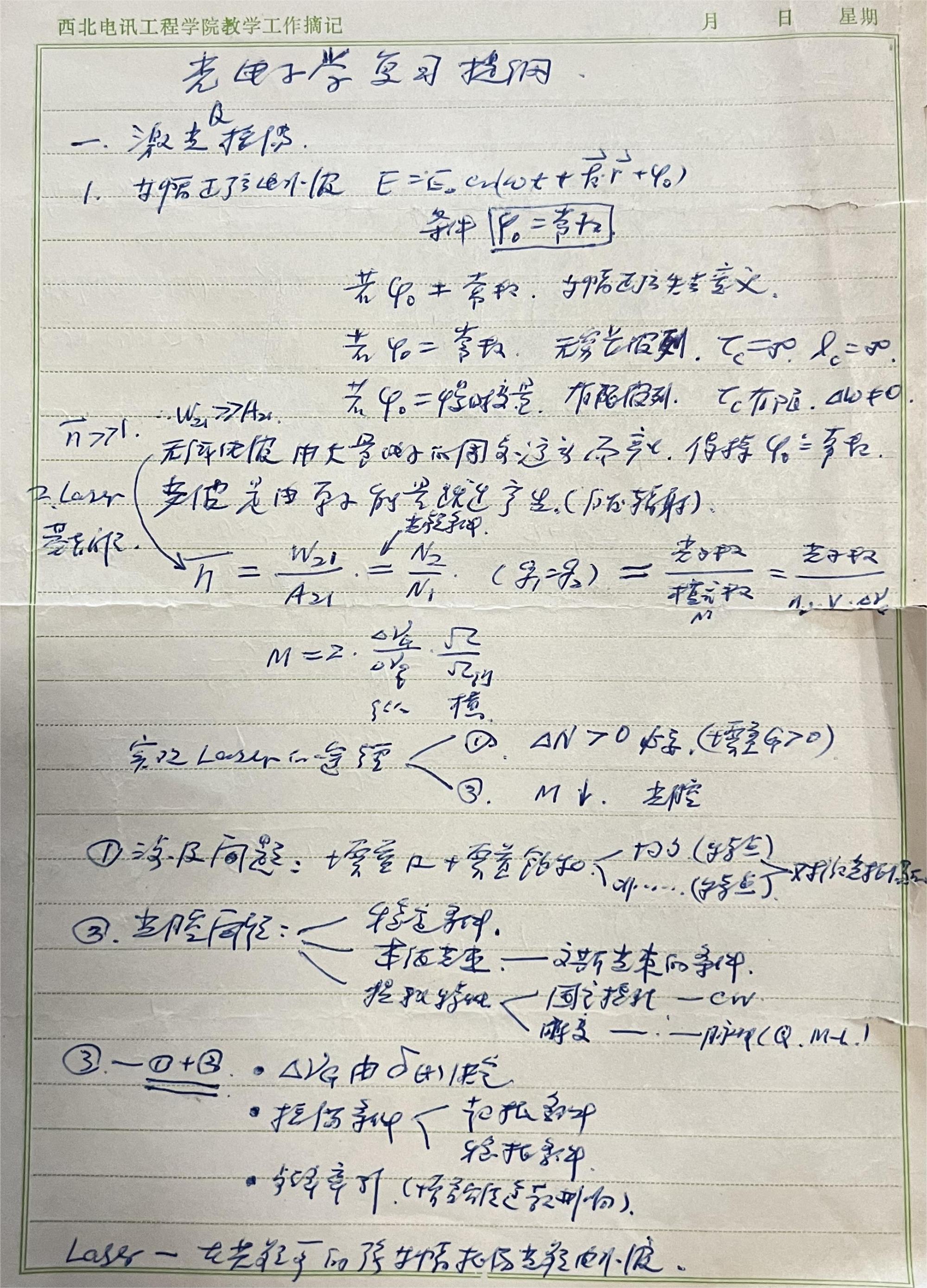 光电子学复习提纲手稿(金沙娱乐城档案馆馆藏)