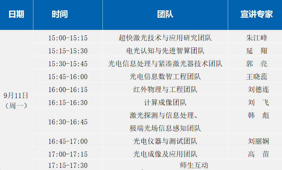 宣讲会上,来自超快激光技术与应用研究中心、电光认知与先进智算、光电信息处理与紧凑激光器技术、光电信息数智工程团队、红外物理与工程、计算成像团队、激光探测与信息处理团队、光电仪器与测试、光电成像与应用等团队的教师代表,分别介绍了所在团队的研究方向、研究成果、师资队伍,围绕奖助政策、就业去向等同学们关心的问题,老师们用生动详实的案例辅以幽默风趣的语言进行认真解答,加深了同学们对科研团队的了解。