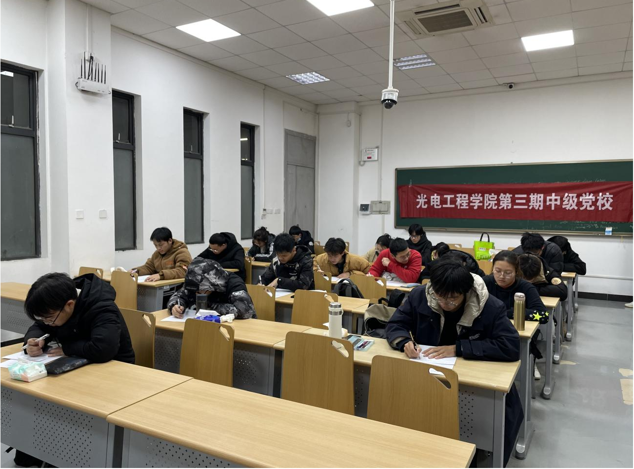 于2023年11月至12月举办第三期大学生中级党校培训班,以“理论学习+实践研讨”的形式深入实施“七个一工程”,教育引导入党积极分子自觉提高思想觉悟、端正入党动机、规范自身行为,本学期班团支部推优的39名入党积极分子参加培训。