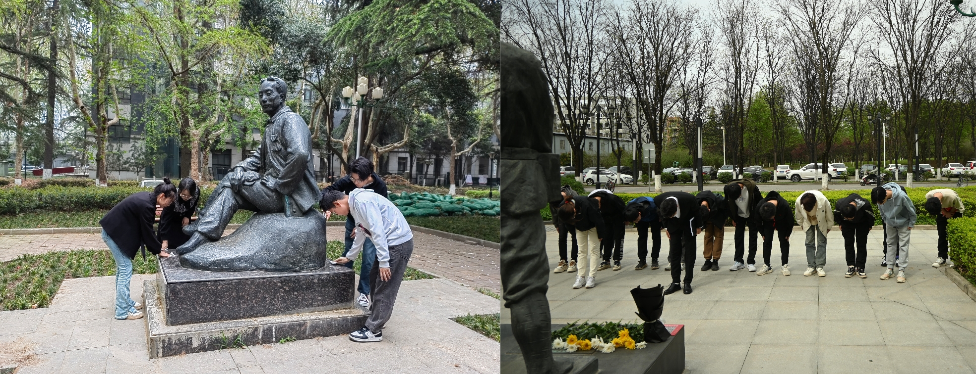 硕士23级、本科22级党员、团员分别在北校区王诤将军雕像以及南校区李白烈士雕像前开展了清明节祭扫及追思活动。