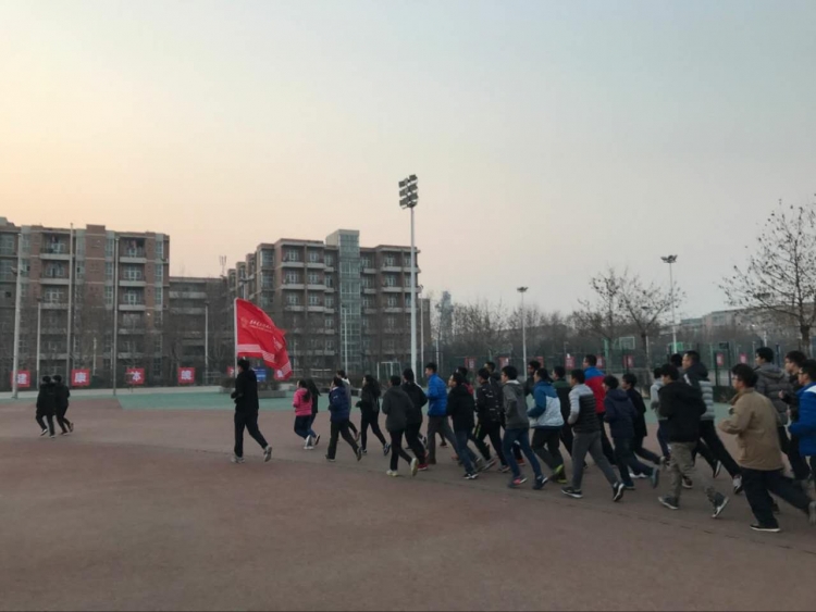 中一道亮丽的风景线。三圈过后,同学们结束了本次的跑操任务,虽然第一天还有些不太习惯,但使早起迷糊的同学积极调整了心态,以迎接崭新的一天。同时跑早操也给静寂的早晨注入了生机与活力。