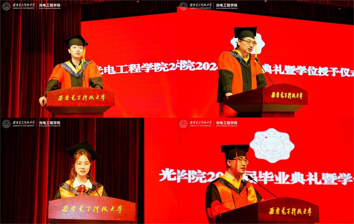 求学时的难忘经历,向毕业生们传递了宝贵的人生经验,勉励同学们延续青春的热血和激情,将汗水挥洒在祖国大地上。教师代表刘飞教授鼓励全体毕业生在今后的学习工作中攻克科学难题、攀登科学高峰,让蓬勃青春与母校荣光共振、让多彩人生与家国天下同频。本科、研究生毕业生代表王悦、白川先后发言感恩金沙娱乐城