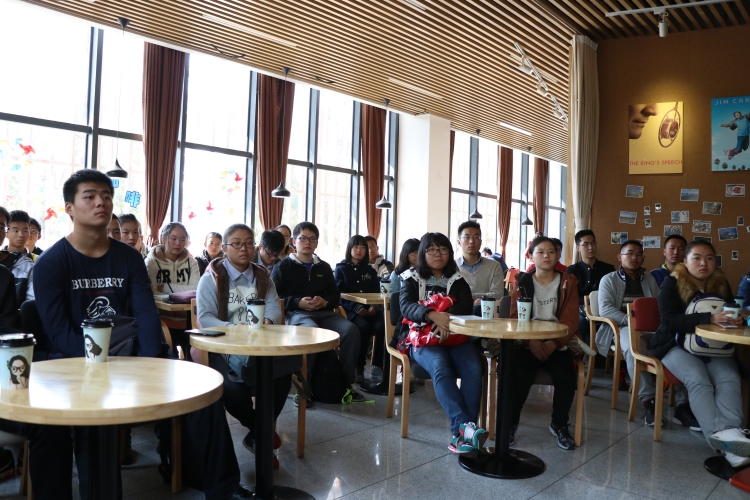 执行院长郭立新教授在图书馆与同学们交流互动,漫话大学生活。师生们团团围坐,喝着醇香的咖啡,听着教授品读做人、做事、做学问,现场气氛温馨、活泼、热烈。