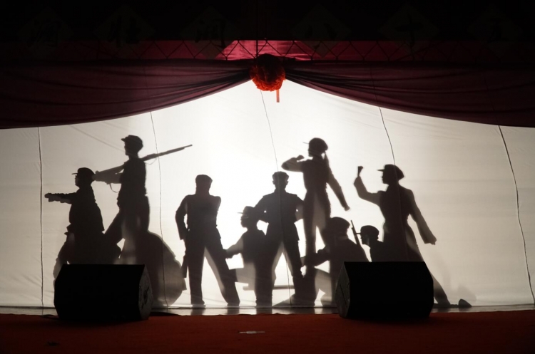 学员开始长征并始终坚持学习的场景,在灯光的配合下,“长征路上办学”的雕塑惟妙惟肖地“篆刻”在大幕上。