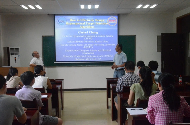 师生作了两场题为Real Time Hyperspectral Target Detection 和How to Effectively Design Hyperspectral Target Detection Algorithms的学术报告。会上,张建祎结合金沙娱乐城研究特色,分别就高光谱数据的实时处理和高光谱数据处理算法的设计思路两个主题进行了深入浅出的讲解。他从理论出发并结合实践经验,对现行实时处理理论进行了颠覆性创新,同时结合自己在高光谱数据处理研究上的心得体会,通过实例讲解,演示了如何从基础理论汲取营养、开阔思维进行学术研究工作。