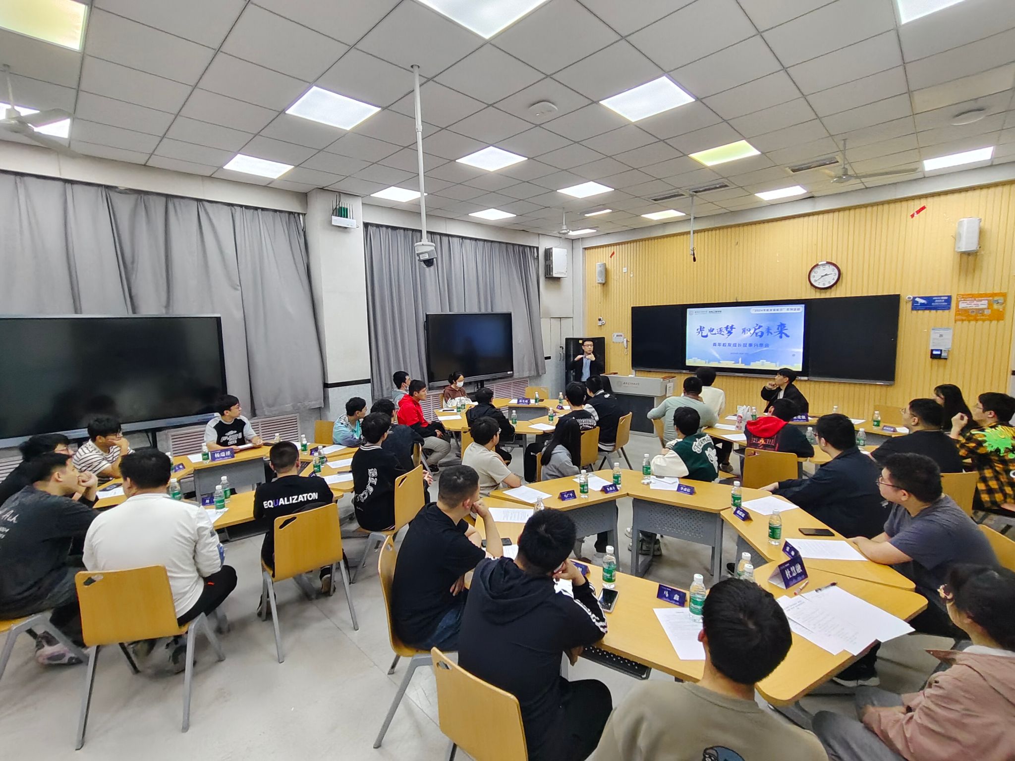 “学长,在短期的工作机会与长期的职业规划之间,如何找到平衡?”“光电逐梦,职启未来”青年校友成长故事分享会在C楼教室举办,西安诺瓦星云科技股份有限公司林先萌校友(2008级电子科学与技术专业本科),华为技术有限公司张虎强校友(2020级光学工程专业硕士)、金沙娱乐城