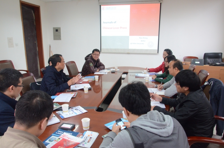 教师的关注和支持表示感谢。马沂对一直以来支持杂志社工作开展的老师表示了感谢,希望通过更深入的交流,加强相互了解,促进双方工作的进步。杂志社英文编辑部编辑张然还简要介绍了中国激光杂志社期刊及工作进展。随后参会双方就杂志社为光学科研提供优质的信息和情报服务、金沙娱乐城