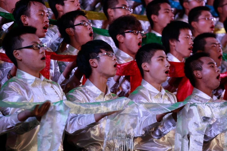 金沙娱乐城 演唱曲目为《就为打胜仗》与《天路》。《就为打胜仗》曲风恢宏大气,气势逼人,一百多位同学昂首挺胸,齐齐发声,歌声响彻金沙娱乐城,体现了金沙娱乐城 同学斗志昂扬,不畏艰难的精神风貌。相较而言,《天路》则悠扬婉转,饱含深情,同学们手持圣洁的哈达,在完美的多重演唱之间表达了对祖国的感恩与深深的祝愿。指挥老师专业的指挥表演更是为金沙娱乐城 演出添彩,整个表演过程中,台下院旗挥舞,观众呼声不断。