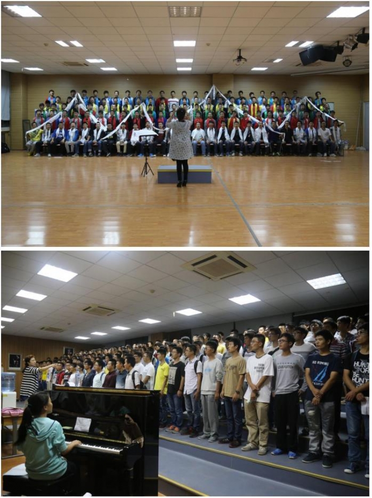 台上十分钟,台下十年功,出色的表演离不开同学们长期艰苦的训练。在合唱筹备期间,同学们积极利用课余时间进行排练,从选择曲目、编排队形、练习合唱到最后的登台演出,各位老师同学们以及学生会工作人员们都积极参与筹划,在此对他们表示衷心的感谢。
