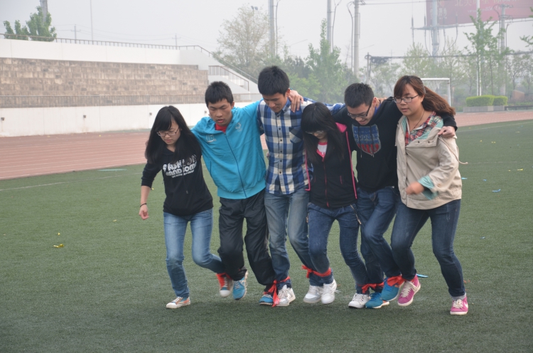 趣味运动会为契机开展的晨练活动,分为自由活动和集体活动两个部分。在自由活动部分,同学们以小组为单位,根据自己的爱好兴趣进行选择。在练习跳绳、4*100接力、六人七足等体育项目的同时,同学们还自发形成英语角,以口语对话、词汇记忆为内容开展晨读活动。在集体活动部分,全体同学在各班学生骨干的组织下,集合整齐列队进行有氧慢跑、竞走等活动。