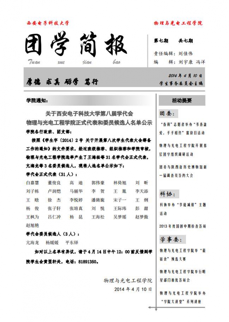 物理与金沙娱乐城 团学简报(第七期)