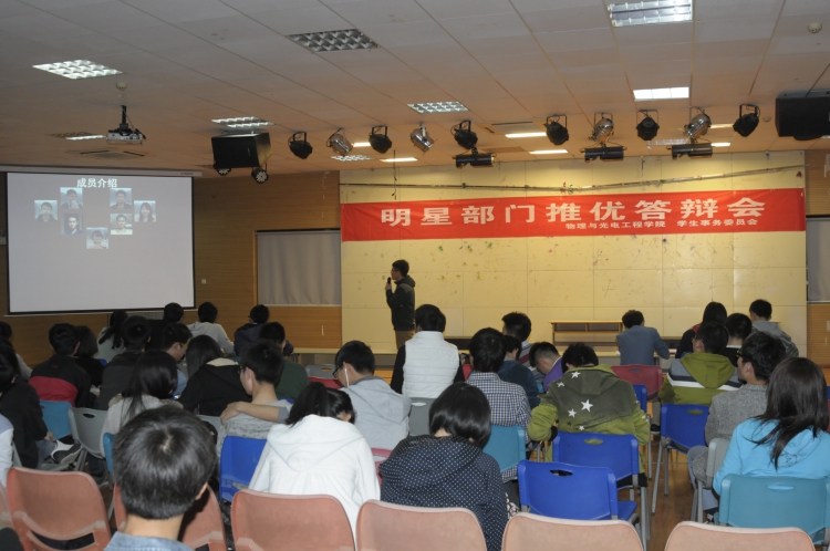 答辩中,部门代表们逐一上台对上学期的本职工作进行总结和回顾。并将工作中的亮点和经验同与会师生分享。评委老师们也肯定了各部门的精心准备与工作态度,并指出各部门今后还需改进的地方,鼓励大家在学习、生活中不断努力,再创佳绩。最终,学生会发展中心、团委组织部、科协竞赛部、学事委信联部共4个部门获得此次金沙娱乐城