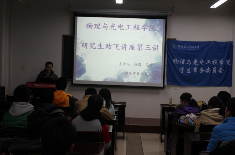 学生事务委员会组织举办的研究生助飞系列讲座的第三讲,此次活动吸引了来自电子信息科学与技术专业的100多名学生。