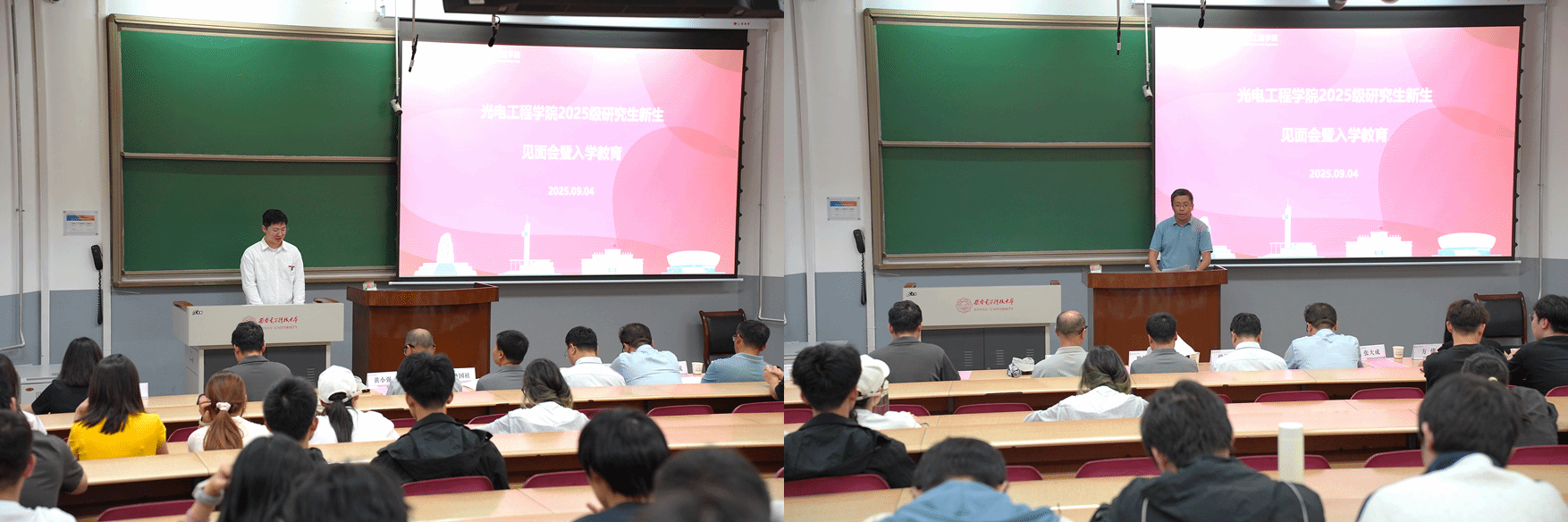 2025级研究生新生张泽奇代表全体研究生向师长、家人表达感谢,号召同学们传承弘扬金沙娱乐城精神,以饱满的热情、坚定的信念和不懈的努力提升综合素质,共同书写研究生阶段的精彩篇章。导师代表光电仪器系主任张大成向同学们讲解了研究生与本科阶段学术研究的区别以及光电学科的发展前景,希望同学们在光电探索的旅途中,既有“仰望星空”的理想,又能“脚踏实地”,发出自己科研生涯的光亮。