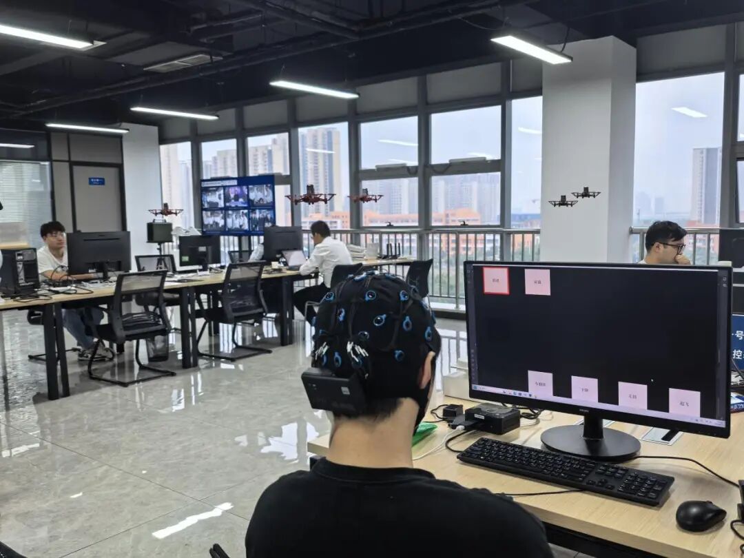 副院长秦翰林在指导中进一步介绍:“我们突破了抗干扰、低延迟等多项关键技术,已实现从单架无人机控制到多机编队协同飞行的跨越。脑控就是传说中的‘意念控制’,但这项技术并非完全依赖人脑实现全程控制——否则一旦操作者注意力分散,无人机就易失控。因此,我们引入人工智能技术与脑机接口协同工作机制,显著提升了系统的稳定性和实用性。”