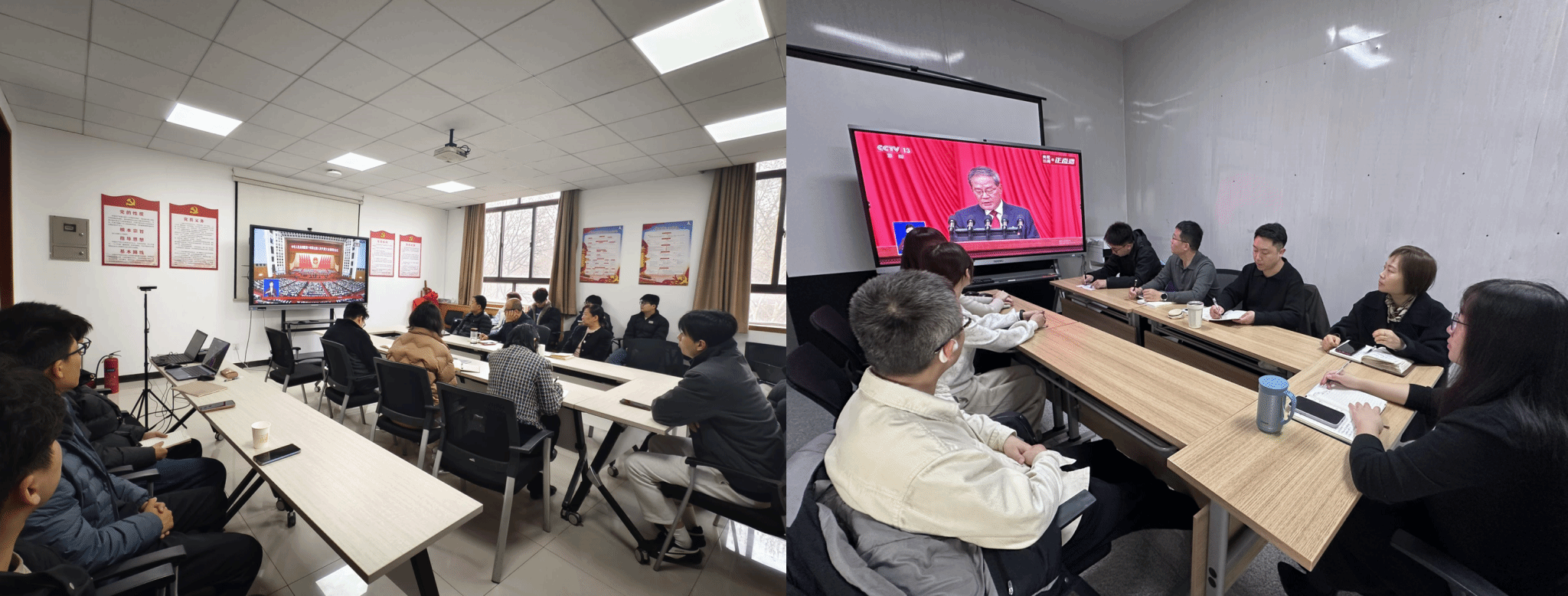 党委组织师生密切关注大会进程,通过多种形式收看收听两会开幕,深刻学习领会两会精神,积极分享交流心得体会。