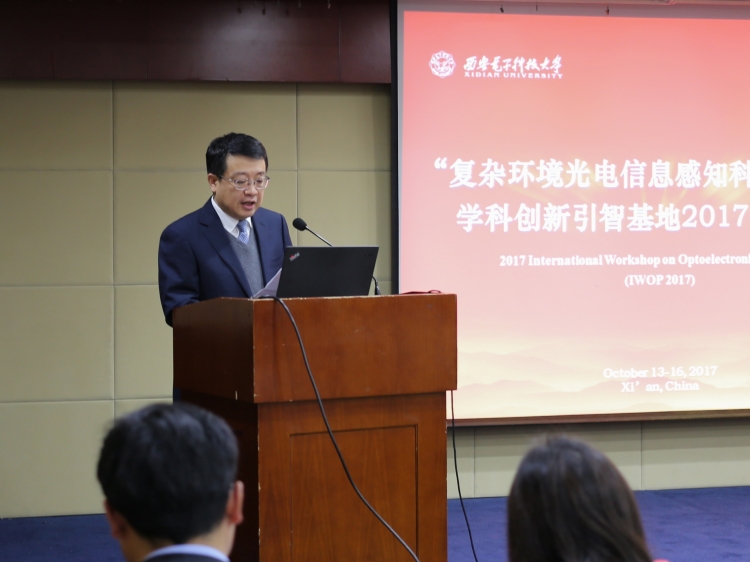的大力支持、学者的辛勤付出表示感谢。他谈到,“复杂环境光电信息感知科学与技术”学科创新引智基地面向国家光电工程领域重大战略需求,依托智能感知与图像处理、新型激光器件与光信息处理、无线电物理三个省部级实验室建立,致力于解决未来复杂环境光电信息感知与处理中的关键科学问题。通过采用“引进、吸收消化、再创新”的战略思路,引进海外著名学者和高层次的研究人员,培养国际化的高层次人才和创新团队,深入开展高水平的国际科研交流与合作,力争打造一个在国内具有示范性的战略性、国际化的光电信息感知与处理领域的科学研究、高层次人才培养和国际学术交流的合作创新基地。他希望通过学术年会这一交流平台,深入研讨,增进友谊,共谋发展,将“复杂环境光电信息感知科学与技术”学科创新引智基地打造成为光电信息感知与处理领域内具有国际影响力的学术交流平台。