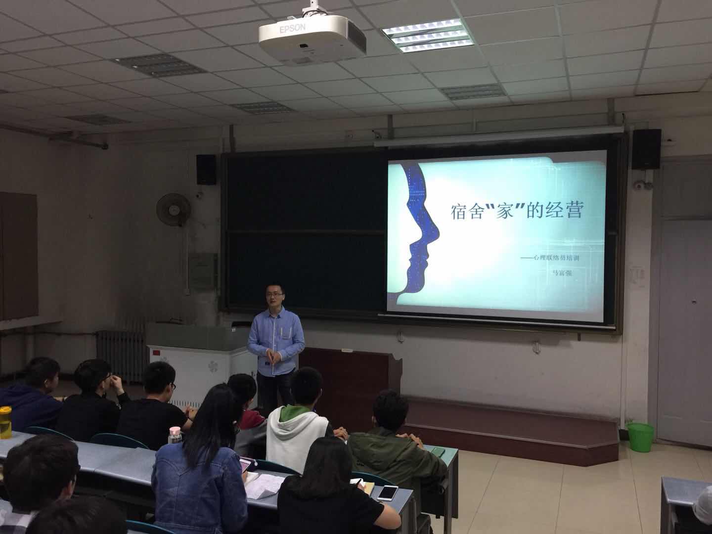 马富强老师为大一受助学生做了主题为“宿舍‘家’经营”的讲座。马富强以宿舍为话题,分享了一些积极应对宿舍内矛盾和问题的方法,让他们认知到积极情绪的重要性,努力培养他们自信乐观等心理品质,以此促进受助学生身心的全面发展。