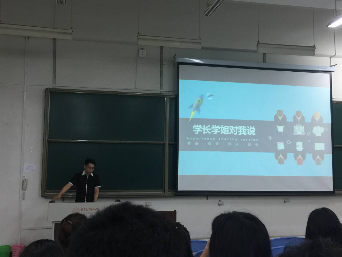 16级举办了优秀毕业生经验交流会,本次活动特别邀请到14级张馨(现保研到国防科技大学)、张乾(现保研到清华大学)、曾凡超(现考研到金沙娱乐城