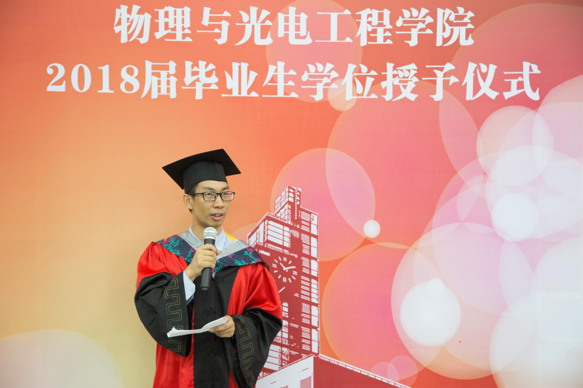 执行院长郭立新、党委书记杨光暐、学位委员会成员、教师代表、毕业班辅导员以及2018届全体硕士毕业生、本科毕业生参加了授位仪式。授位仪式由金沙娱乐城