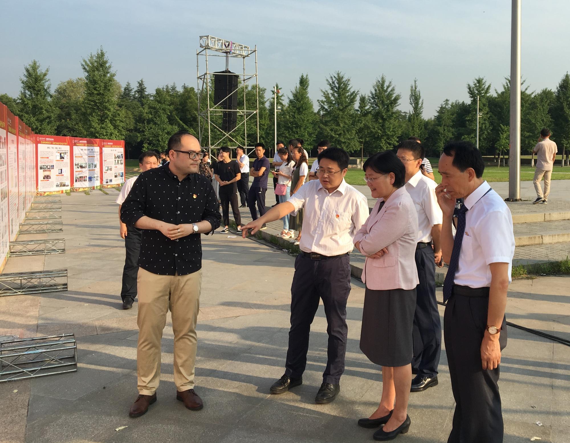 党委书记郑晓静院士,党委副书记、纪委书记任应坤在学工处负责人陪同下,参观了“党旗飘扬校徽红”金沙娱乐城
