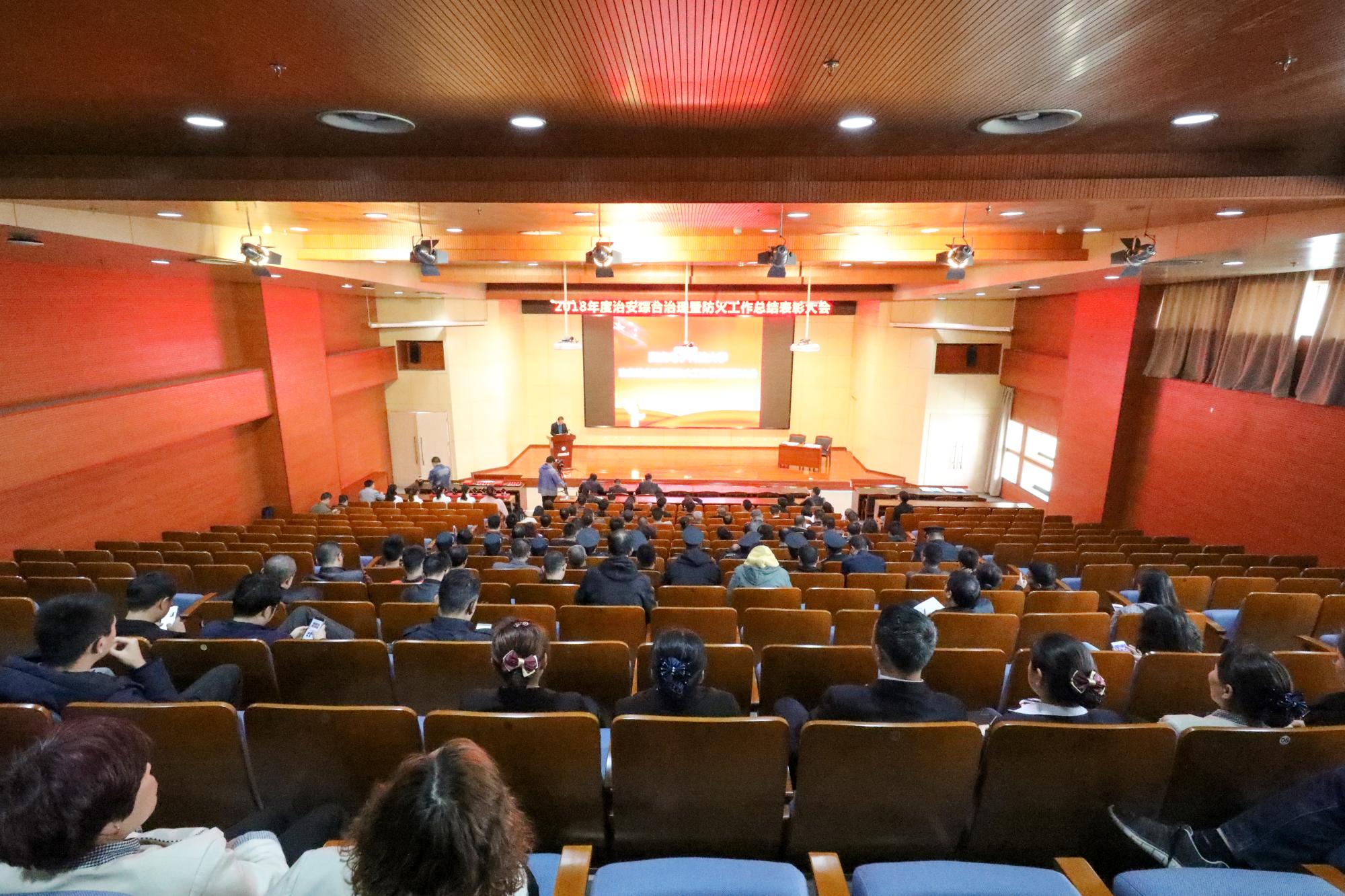 2018年度治安综合治理暨防火工作总结表彰大会在南校区210报告厅召开。副校长、校综治委主任蒋舜浩出席总结表彰会,会议由校综治委副主任林松涛主持。