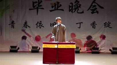 大四本科生自导自演的小品“光阴的故事”,讲述了三个老大爷幽默又饱含深情的故事。校舞团张帆带来的舞蹈“匆匆那年”,充满时光易逝、珍惜过往的启示。全场毕业生在一个个充满笑点的故事情节中萌生了感恩、惜别之情,大学里的美好回忆也在心头一幕幕划过。