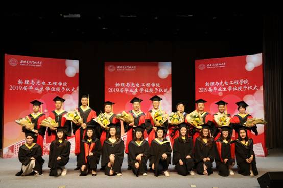 独国社老师、邵晓鹏老师、曾晓东老师共同为2019届毕业生颁授学位。毕业生依次登台,鞠躬握手,接受拨正流苏,手持证书与老师亲切合影,为求学生涯画上圆满句点。