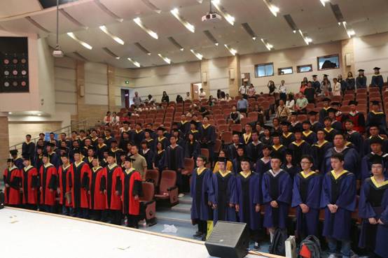 授位仪式在全体起立奏唱国歌中开启。研究生和本科生两场授位仪式依次进行,独国社、邵晓鹏分别寄语2019届研究生和本科生,代表金沙娱乐城