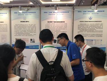 决赛分两天进行,7月8日,评审专家对所有项目进行现场评审,选出30%的项目进入金银奖角逐环节。入围金银奖的作品在决赛第二天进行路演,通过10分钟的答辩时间从项目创新价值和竞争优势、市场前景、商业模式、发展规划与财务风险、团队组成等方面进行讲解,最终确定金银奖的得主。下图为决赛首日刘飞老师从工作原理及应用范围等方面详细为评审专家介绍“高分辨率广域侦察监视成像系统”。