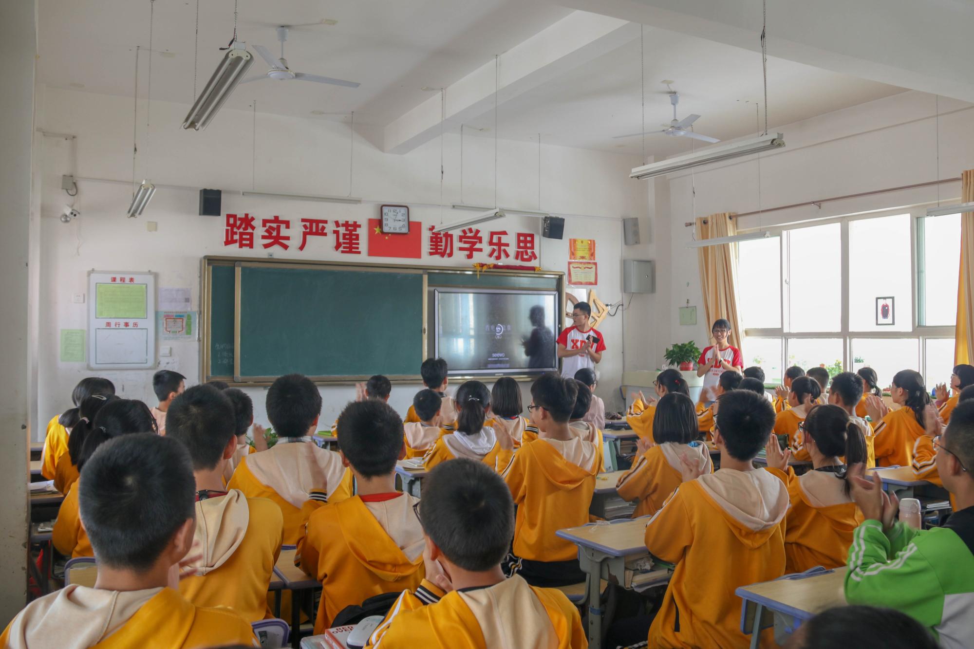 与此同时,物光春雨志愿者服务总队的成员们走进课堂与初中部的学生们进行实践课互动。志愿者韦胜生介绍了金沙娱乐城