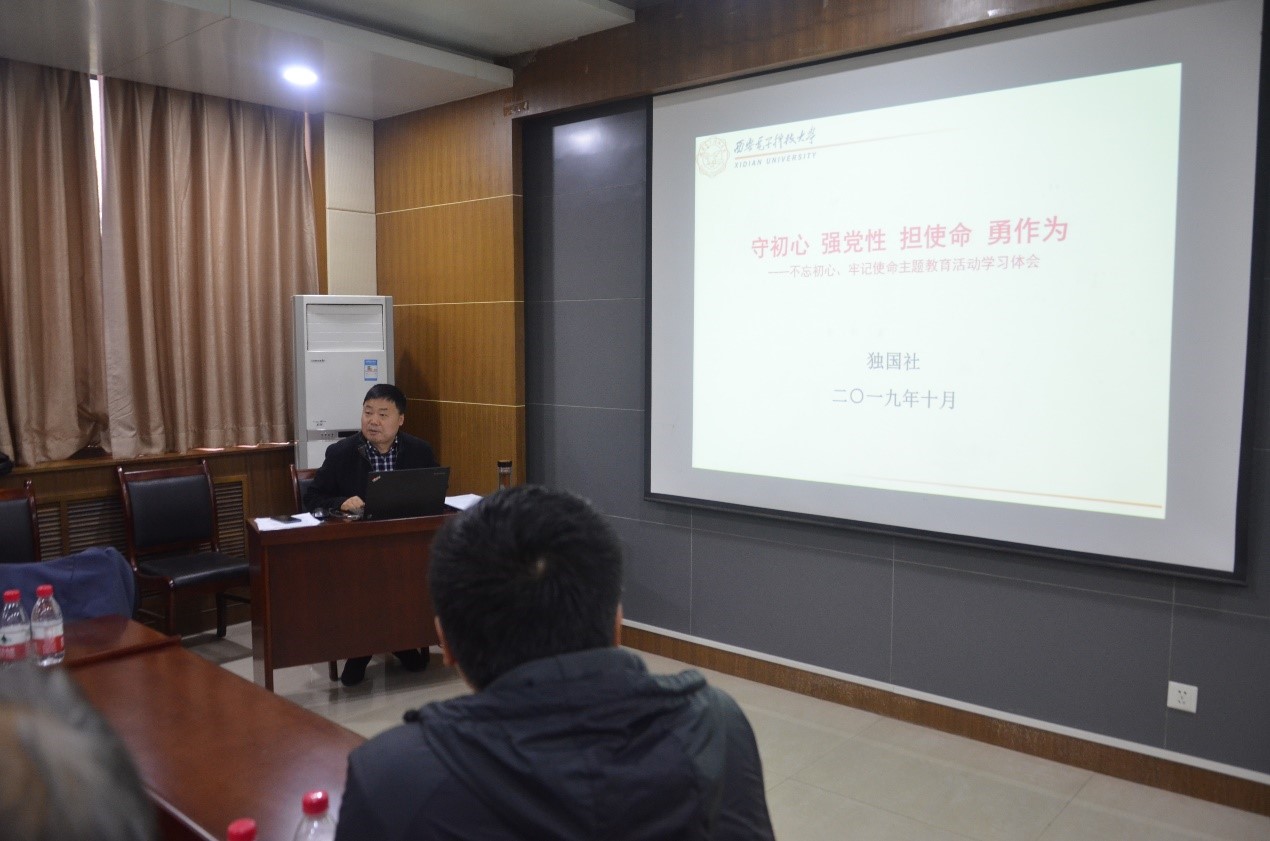 的党员教师干部践行党的初心和使命的具体路径。当前开展主题教育,就是激励大家寻找来时的路,用习近平新时代中国特色社会主义思想武装起来,立足岗位,发挥出应有的积极作用。独国社还分享了增强党性、担当作为的具体体会。一是提高政治站位,坚持党的全面领导,树牢“四个意识”,坚定“四个自信”,做到“两个维护”。二是深入学习习近平新时代中国特色社会主义思想,提高党性修养。三是做“四有” 好老师,当好引路人,践行新思想。