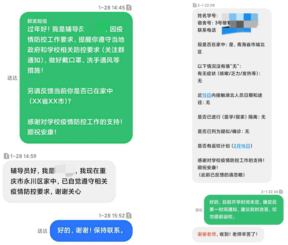 牵挂关心每一位学生的健康安全,身处全国各地的同学们也向母校发来自己的近况,表达自己战胜疫情的决心和信心。