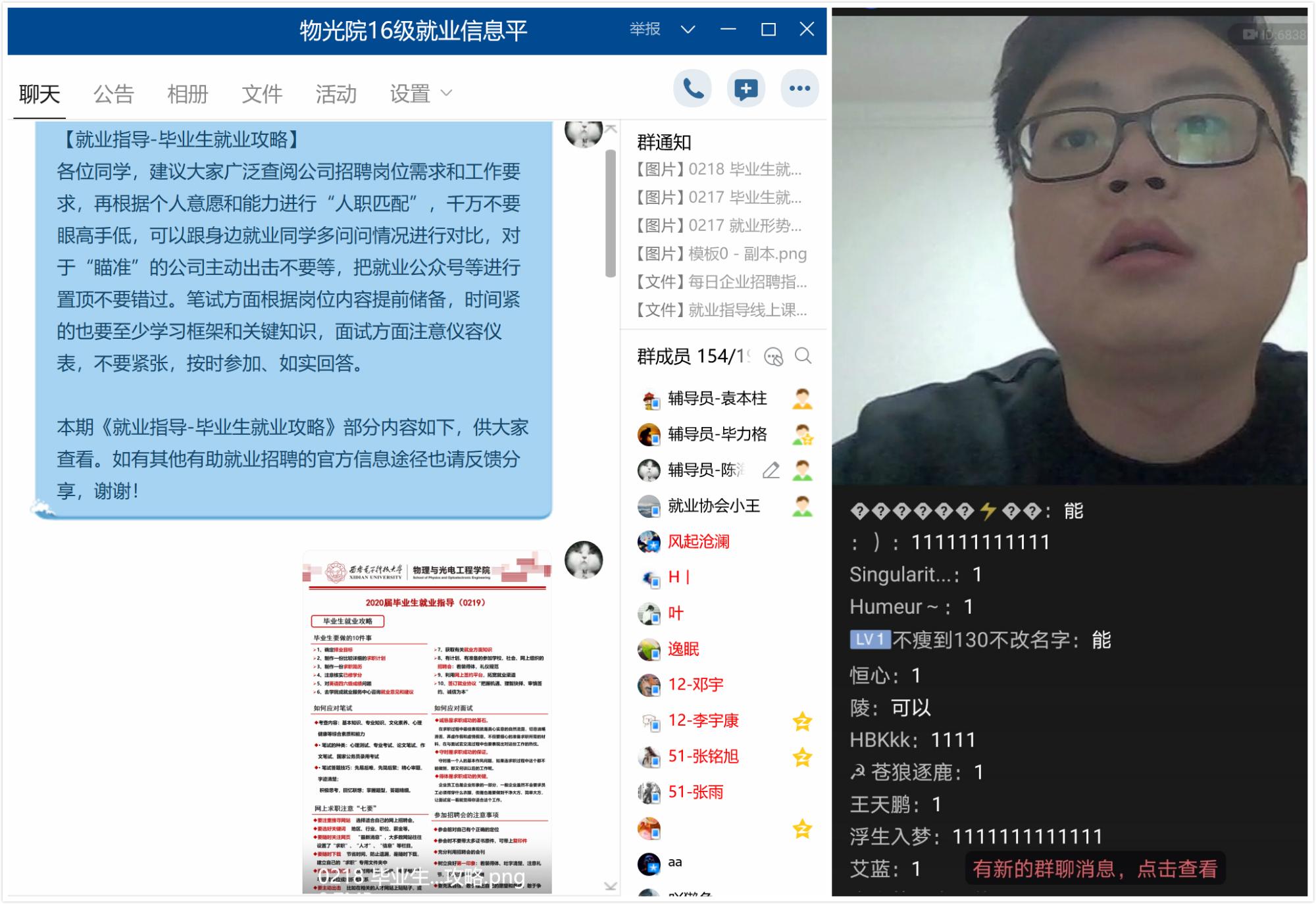 的相关政策给予了解读,并提醒大家认真对待线上教学课程,调整好生物钟,按时按点到相关平台上课。同时,辅导员也给学生强调了每日要完成“疫情通”填报和“寒假返校前生活轨迹”的记录,并在点名结束后回答了学生们的一些提问。