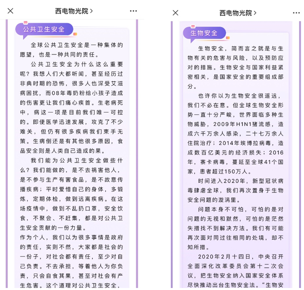 公众号推送了今年的普法宣传内容,结合防控疫情着重介绍了公共卫生安全和生物安全的主要内容,并组织金沙娱乐城
