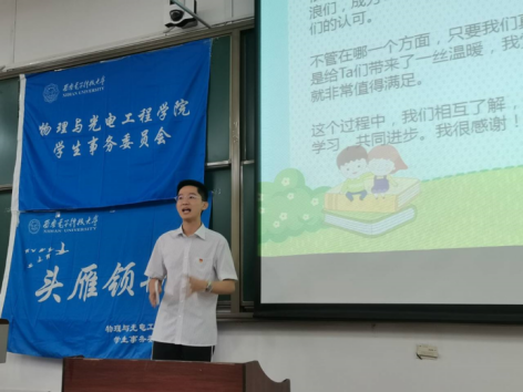 首先,李睿学长向所有新一届领航员介绍了领航工作任务和注意事项,重点结合自身领航经历分享了领航感受,为新一届领航学长们提供了宝贵经验。他谈到:我们应该加强与学弟学妹之间的联系,协助辅导员老师帮助新生同学们解决其在学习、生活以及学业发展等过程中遇到的问题,引导新生快速适应大学生活。
