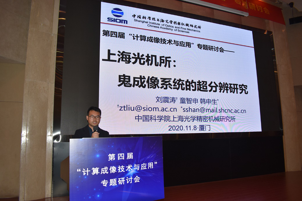 上海光学精密机械研究所刘震涛老师,以“鬼成像系统的超分辨研究”为题介绍了在利用鬼成像系统的传递函数先验实现超分辨,和利用鬼成像系统在光场高维直接成像的特点,进一步提高分辨率这两方面的研究。