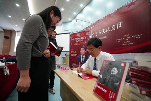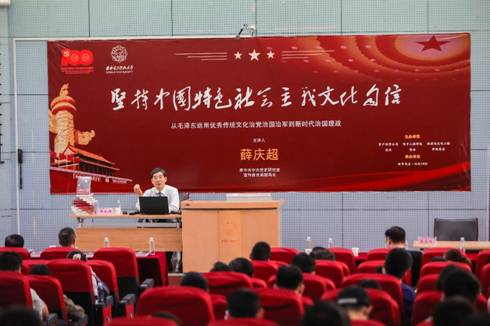 会上,薛庆超教授以赓续红色血脉,与共和国同行的金沙娱乐城校史作为开场,从文化定义的重新解读,坚定文化自信的时代意义,辩证看待中华传统文化,老一辈革命家对优秀传统文化的传承,习近平总书记关于优秀传统文化的重要论述等方面,深入浅出地阐述了中国特色社会主义文化的内涵和外延,号召全体师生进一步传承和发扬中华优秀传统文化。薛庆超教授谈到,中华民族源远流长,悠久历史孕育出的宝贵精神品格,积淀形成了有利于中华民族发展,有利于中华民族团结,在人类文明历史上具有重要地位的中华优秀传统文化。在漫长的革命历程中,老一辈革命家充分运用中华优秀传统文化的精髓,实事求是开展政治斗争,德才兼备选拔任用干部,引经据典指导武装革命,取得了新民主主义革命的胜利。在社会主义建设中,中央领导集体充分运用中华优秀传统文化精髓,求同存异提出和平共处五项原则,坚持“小康”发展中国式现代化,肝胆相照促进各民族团结共进,带领中华民族逐渐走向繁荣富强。建党百年,中华传统文化已经成为了华夏儿女的基因,中华民族的血脉。如今,正处于走向新时代、开启新征程的重要历史节点,全体师生要充分运用马克思主义的观点。方法,科学对待中华传统文化,大力弘扬以爱国主义为核心的民族精神和以改革创新为核心的时代精神,坚持中国特色社会主义文化自信,为实现中华民族伟大复兴而奋斗。