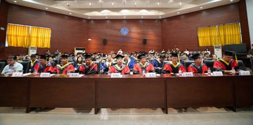 执行院长邵晓鹏、副院长魏兵、原副院长李平舟、教授委员会主任张建奇、教师代表刘飞和2021届硕士毕业生共同参加了授位仪式。仪式由金沙娱乐城