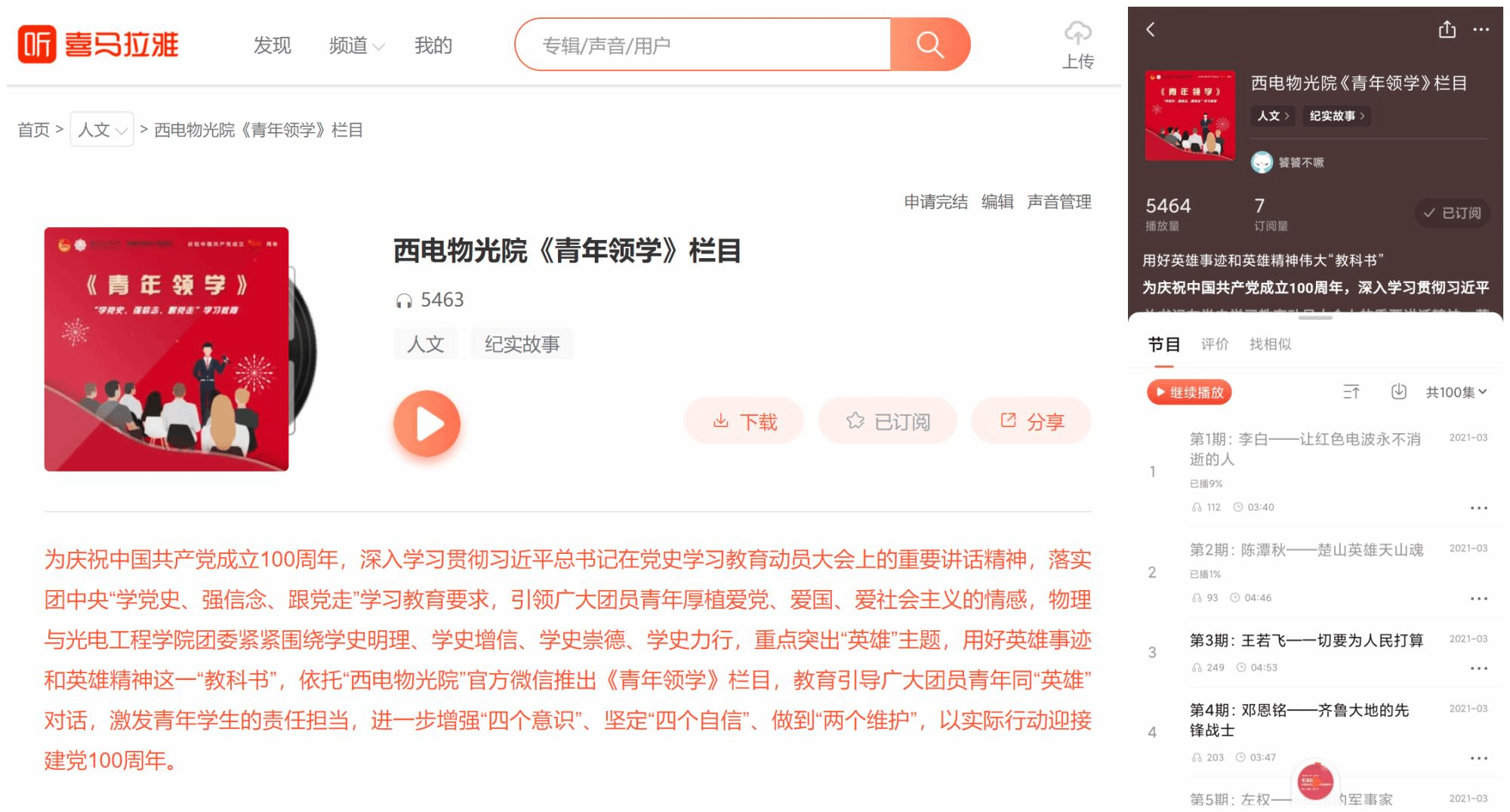 制作“青年领学”音频专辑
