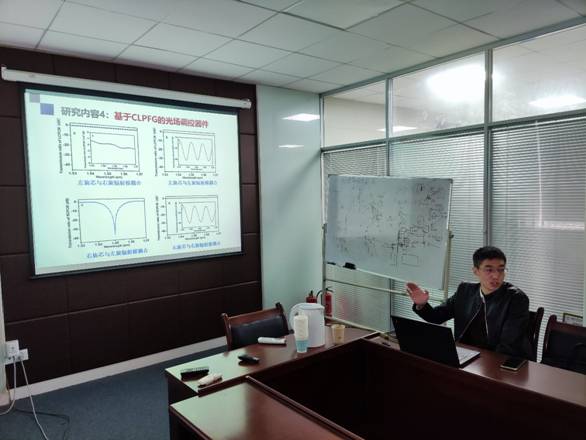 光纤传感实验室,并于西大楼四楼中厅会议室作了题为“物理形变类长周期光纤光栅制备及其应用”的学术报告。