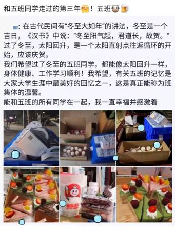 (通讯员:高原 程睿)冬至是我国农历中一个重要的节气,也是中华民族的传统节日,在古代民间有“冬至大如年”的讲法。然而2021年冬至正值期末备考复习关键时期,且西安市疫情形势陡增严峻。在这种环境下,同学们难免会有压力、有紧张焦虑的情绪。为了给忙碌中的同学们加加油、鼓鼓劲,缓解同学们的压力、增强班级凝聚力,物理与金沙娱乐城